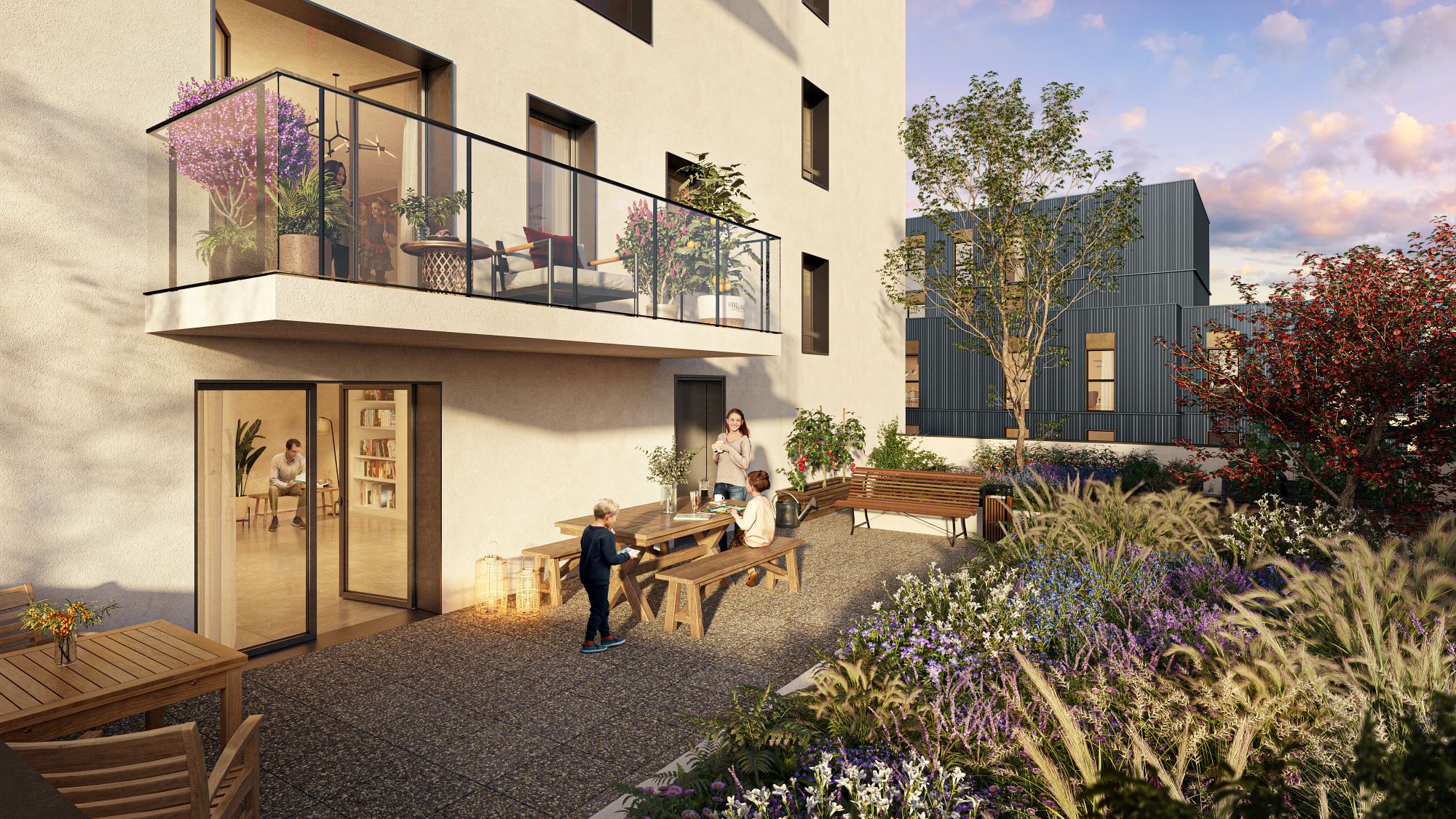 Le programme propose 53 logements du T2 au T5, presque tous dotés de balcons ou terrasses pour profiter d’espaces extérieurs. Certains lots bénéficient également de celliers en parties communes. La résidence est pensée pour offrir luminosité, confort et espaces verts partagés, avec un jardin paysager, des toitures végétalisées et des espaces conviviaux comme une grande terrasse partagée et un atelier vélo.