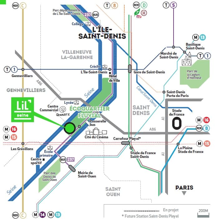 Le projet s’inscrit dans le cadre de la reconversion de la zone des entrepôts de L’Île-Saint-Denis et de la création de la ZAC Eco-quartier fluvial. C’est au sein de cette ZAC, au 8-10-11 Quai du Châtelier, que la SCCV LIL’ SEINE a l’intention de réaliser, sur les lots PA3, PA4 et PA5, un ensemble immobilier à usage principal d’habitation, de commerces et d’ateliers, de 7 étages. Cet ensemble immobilier placé sous le régime de la copropriété comprendra 140 logements et 23 locaux à usage d’activité (19 ateliers et 4 commerces) répartis dans trois bâtiments comme suit :